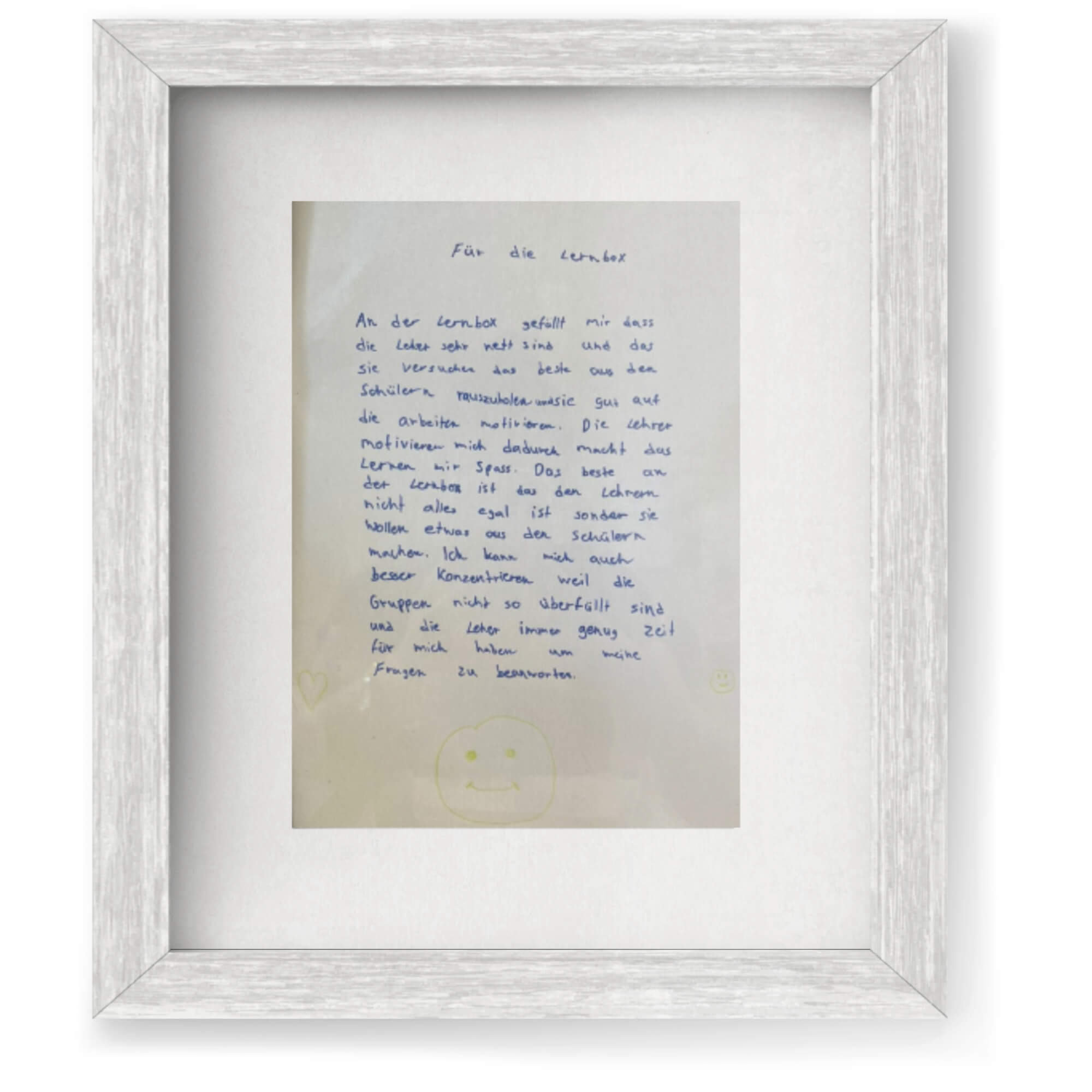 “ Seit dem mein Kind bei der Lernbox ist, geht sie wieder gerne zur Schule, da sie mit dem Lernstoff super mitkommt. Auch die Noten sind wesentlich besser geworden und in Französisch ist keine 4 mehr zu sehen. Sehr erfahrene Lehrkräfte ! Empfehle ich weiter. „